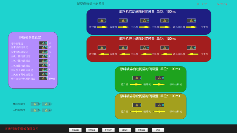 Gdy sygnał Centrum Centrum Młyna jest gotowy, wybierz „Auto” w interfejsie ręcznym i automatycznym selekcji młyna, gdy przycisk „Auto” staje się zielony, kliknij przycisk „Jeden klucz startowy” w interfejsie automatycznego sterowania, aby uruchomić sprzęt, a sprzęt uruchomi się w kolejności rozruchowej. Po kliknięciu przycisku „Jeden klawisz”, cały sprzęt zostanie zamknięty w kolejności wyłączenia.