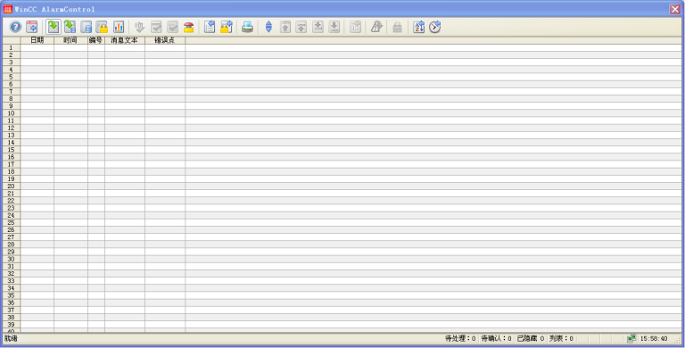 Ten ekran służy głównie do wyświetlania informacji alarmowych urządzenia i przechowywania tych informacji do późniejszego przeglądania. Jak pokazano na rysunku, wszystkie alarmy mają czas alarmu, potwierdzony czas, komunikat alarmowy i czas zakończenia alarmu. Gdy pojawi się alarm, operator może go wybrać, klikając go, a następnie naciśnij przycisk „potwierdzony”, aby potwierdzić alarm, a alarm potwierdzony zostanie wyświetlony czas. Należy zauważyć, że alarmy można potwierdzić tylko wtedy, gdy wystąpią. Jeśli na jednym ekranie jest zbyt wiele alarmów, ekran można odwrócić za pomocą przycisków „Odwróć” i „Odwróć”.